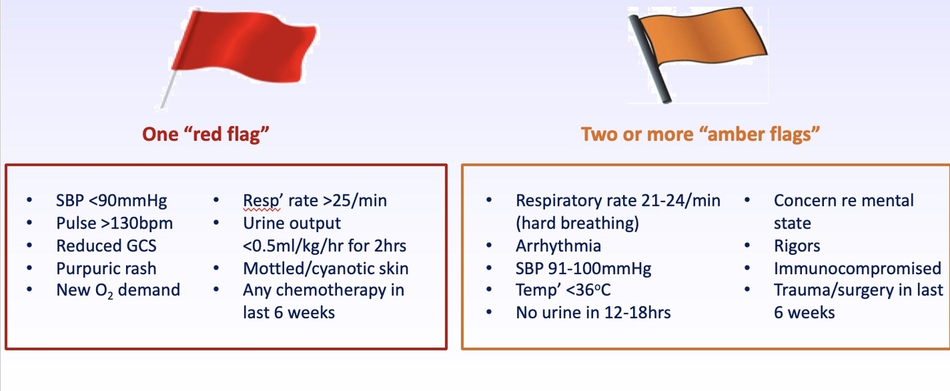 UHNM implements the “flag” system to assess unwell patients: Produced by the UK Sepsis Trust