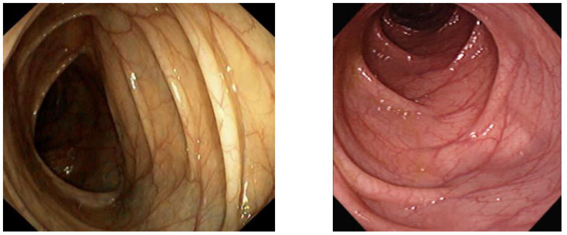 a) une muqueuse colique normale