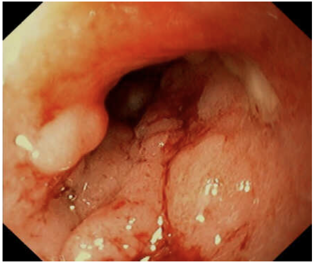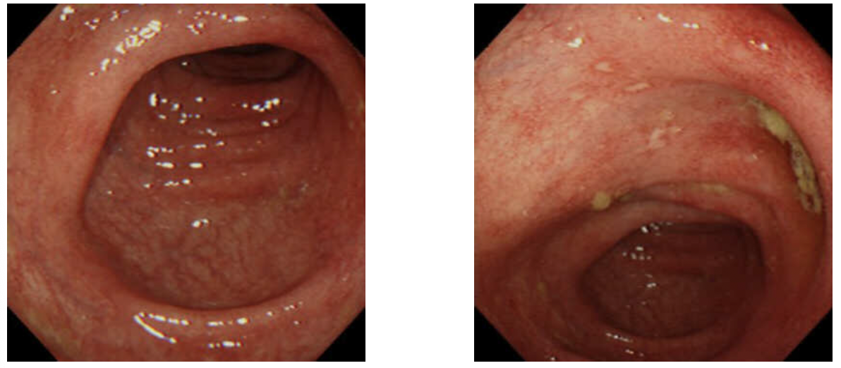 c) La zone de transition d’une colite ulcéreuse