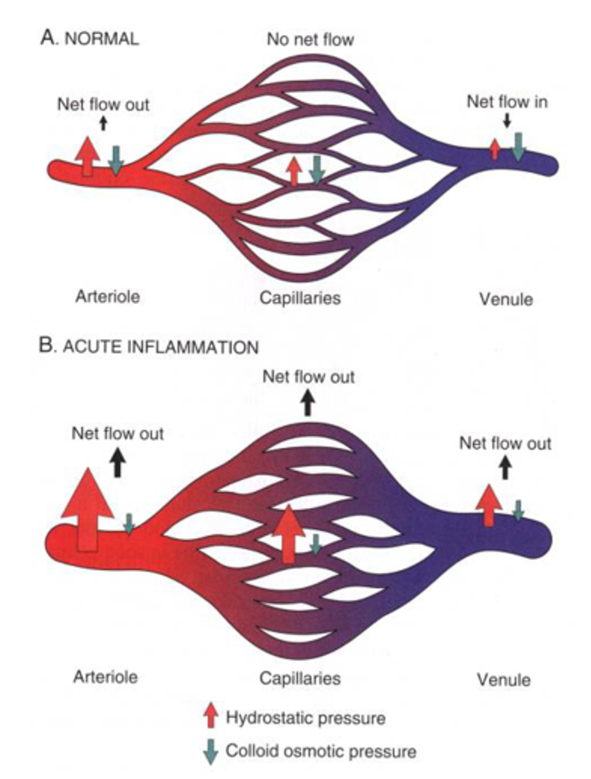 Allows for increased net flow of fluid out of vessels - “exudation”