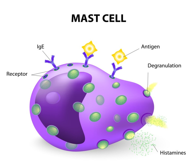 -Released mainly by mast cells (an immune cell that lives in connective tissue, waiting to be activated)