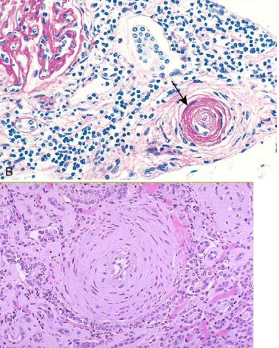 Malignant hypertension. Note hyperplastic arteriosclerosis (onion skinning)
