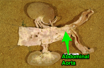 Abdominal aortic aneurism. Between the renal artery and above the femoral bifurcation. He is an old smoker so he is barrel chested from emphysema and pees a lot because he probably has an enlarged prostate.