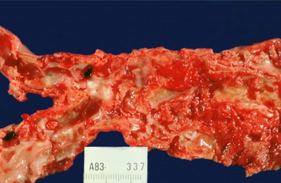This is an advanced atheromatus plaque causing fissures and degeneration. You are at high risk for thrombus development and atheroembolism because of the extensive plaques.