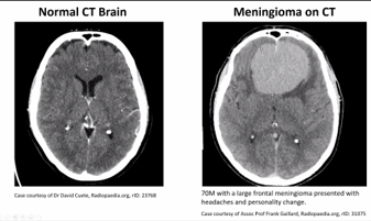 Dx – meningioma of the brain – most common benign lesion of the brain.