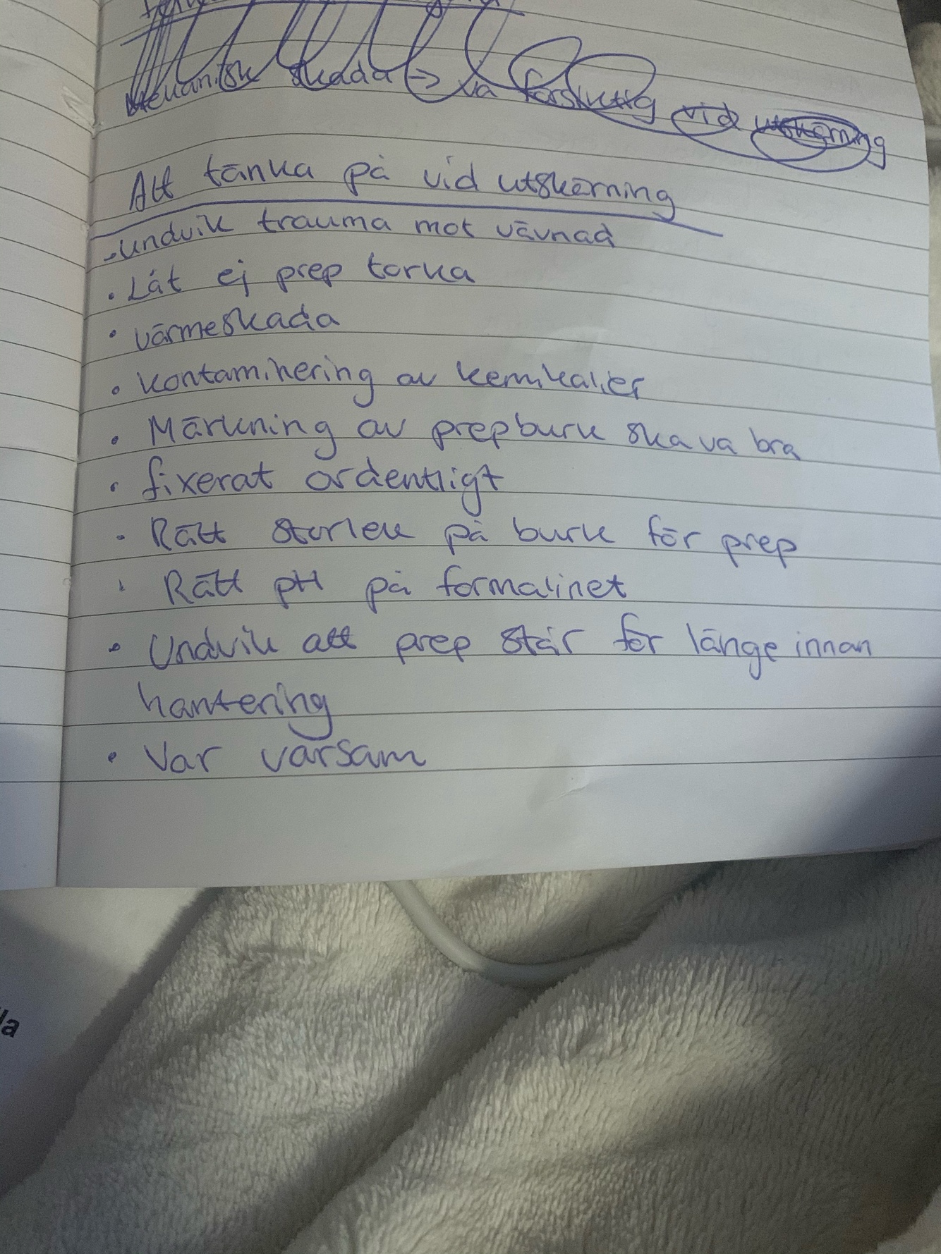 AVsrabba enzymaktiviteten i vävnaden och därmed undvika postmortala förändringar. Detta görs med formalin.