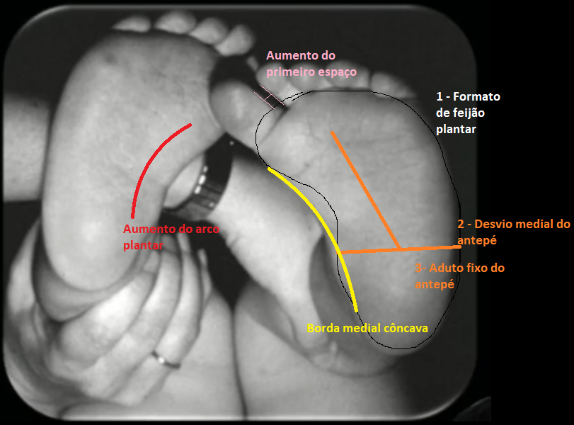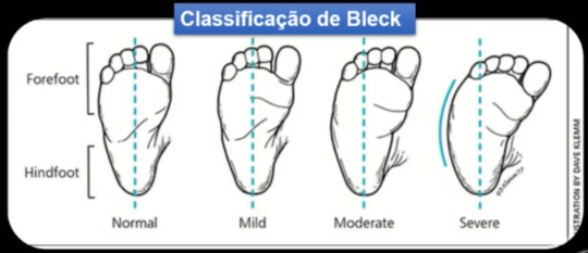 Alteração anatômica: Cunha medial trapezoidal e metáfises aduzidas. O angulo de adução decresce do primeiro ao quinto MTT,