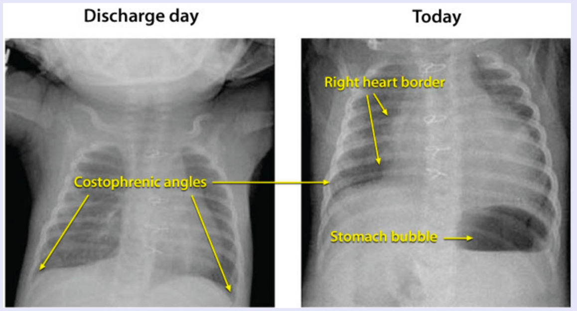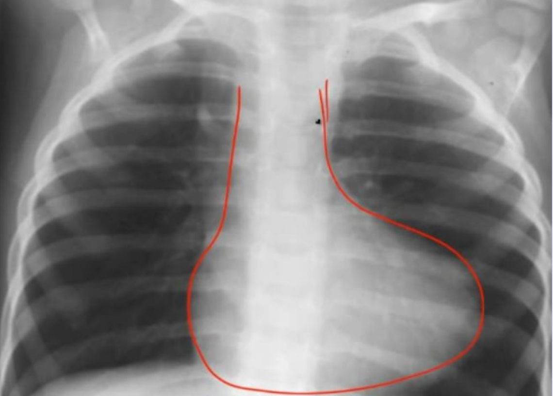 the narrow mediastinum is described as an “egg on a string” appearance