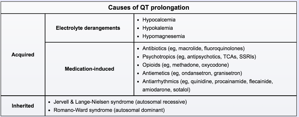 Treatment for patients with prolonged QT intervals includes beta blocker therapy and pacemaker placement.