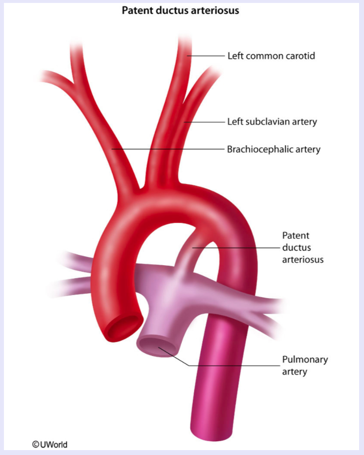 cyanosis that fails to improve with 100% O2 is indicative of a possible congenital heart defect; maintaining the patency of the PDA can be life-saving