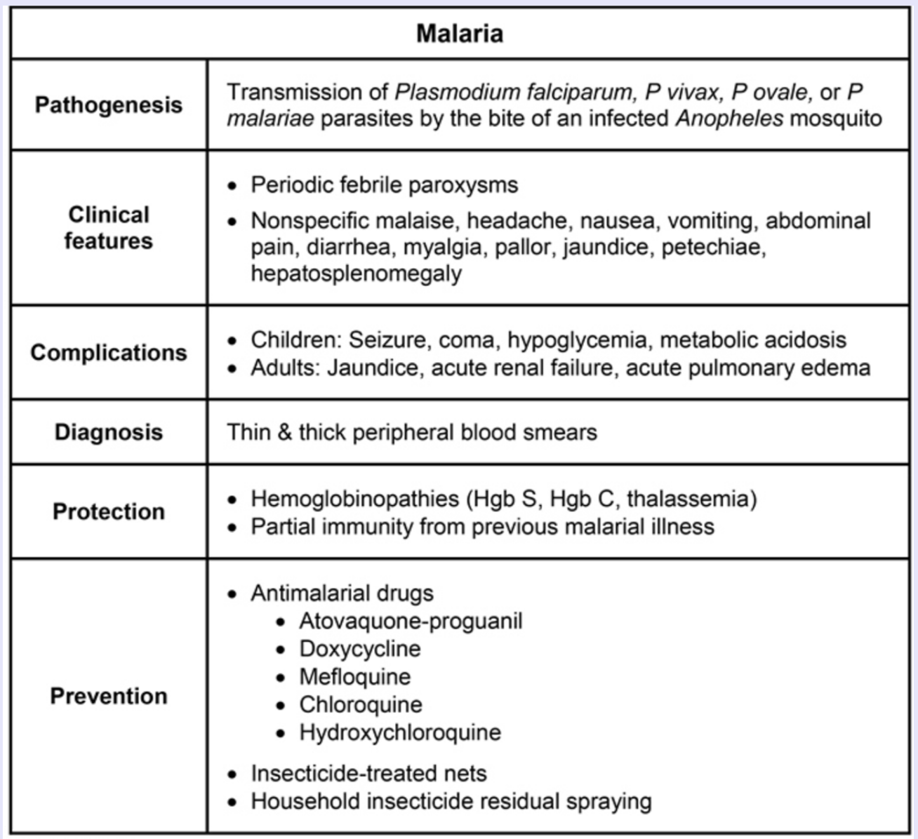 Malaria should be suspected in ill patients who have traveled to endemic regions, especially those with […] fevers.