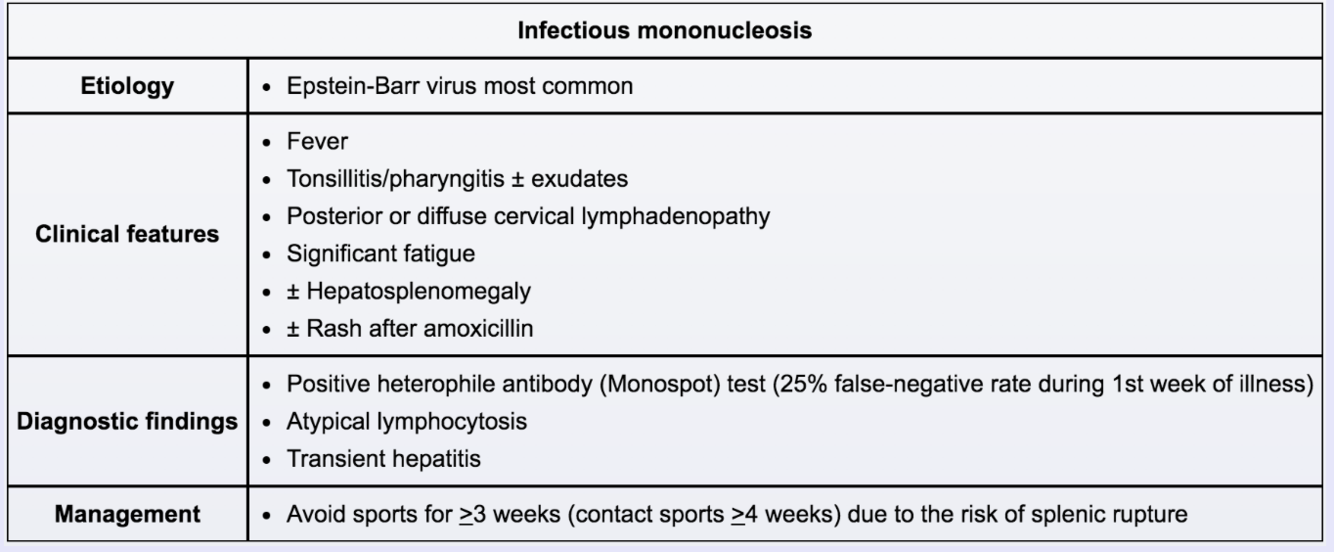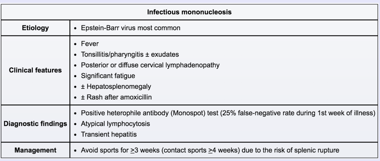 Infectious mononucleosis often presents with fever, exudative pharyngitis, and lymphadenopathy, especially of the […] nodes.