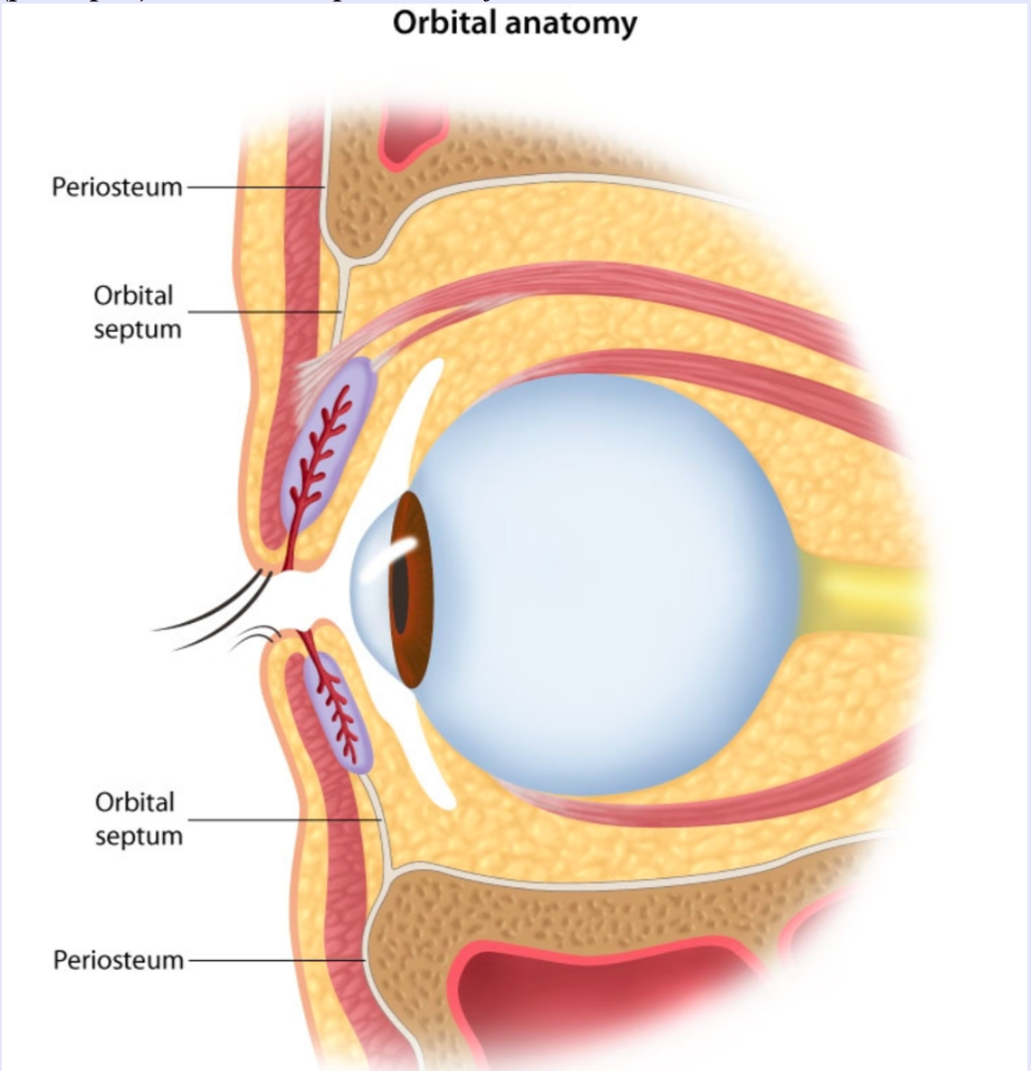 periorbital (preseptal) cellulitis is caused by infection anterior to the orbital septum; orbital (postseptal) cellulitis is a posterior infection
