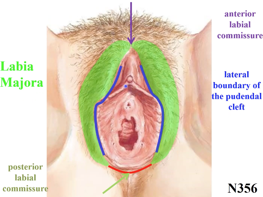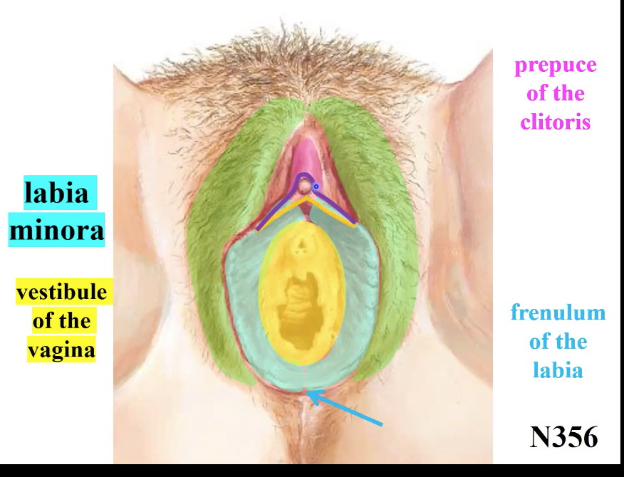 Fold of mucous membrane continuous with the labia minora & continuous with the interior of the vaginal canal