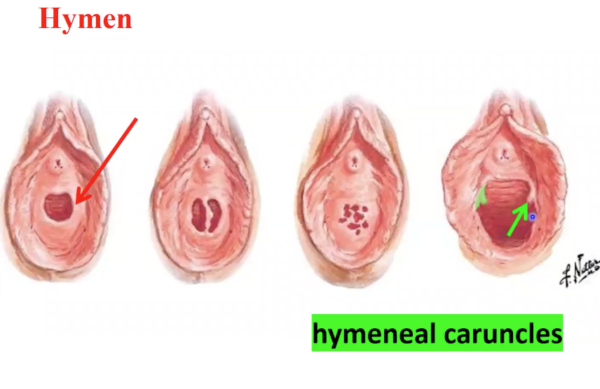 Hymeneal caruncles: apendiges that hang off where the hymen was