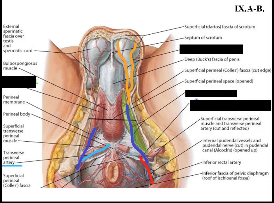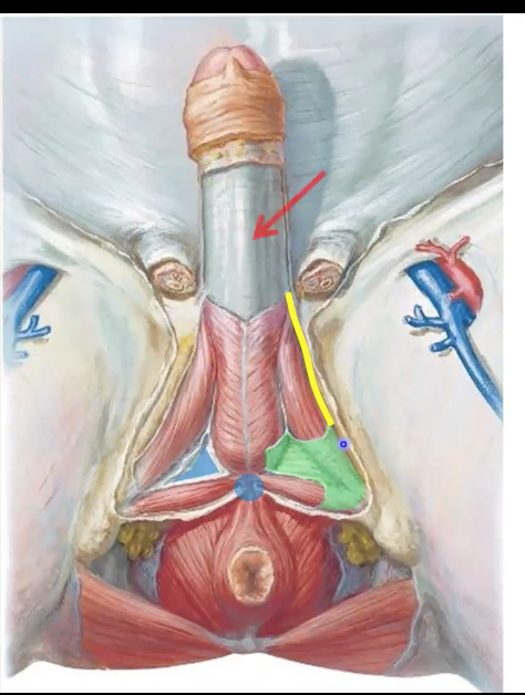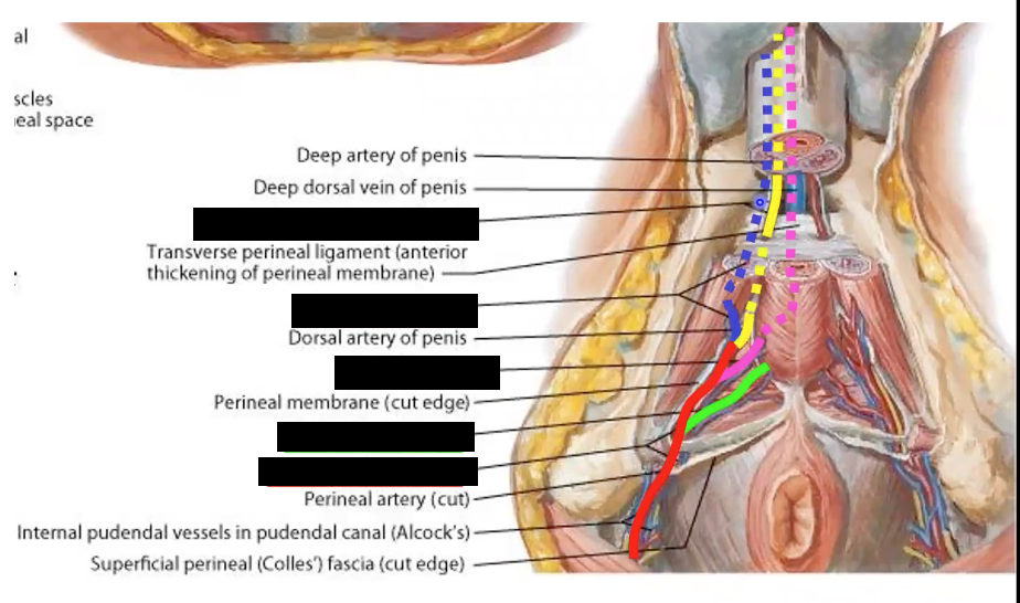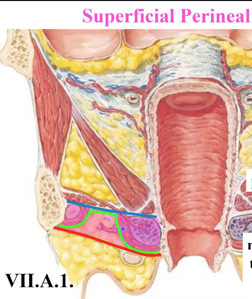 Deep perineal fascia investing erectile tissue & superficial muscles