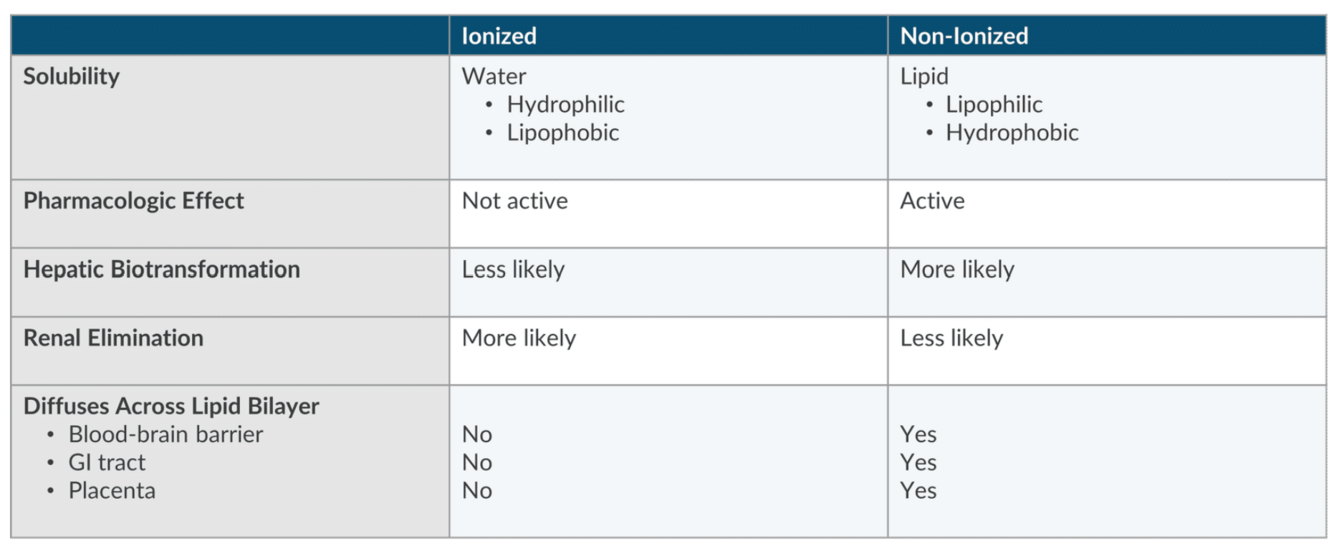 Which is more likely to undergo renal elimination: an ionized or non-ionized drug?