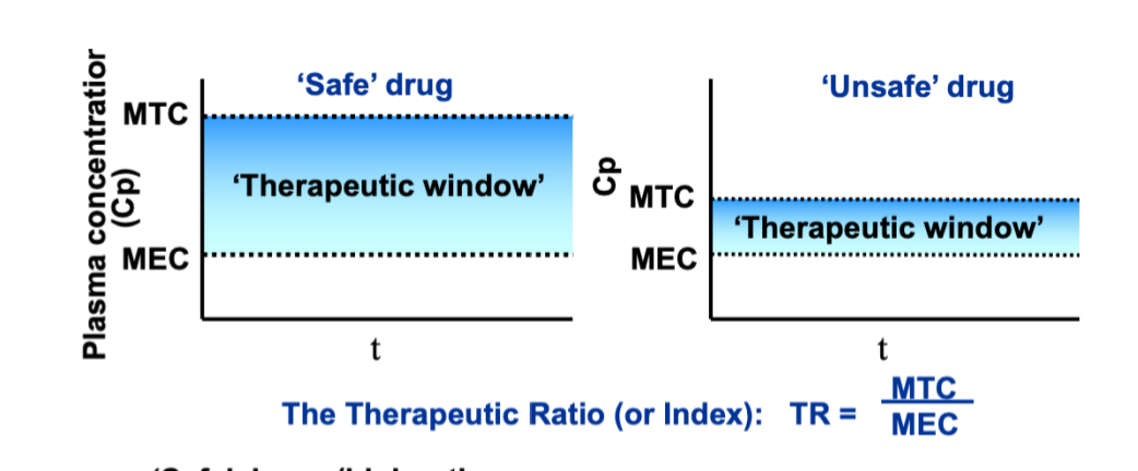 TR= MTC (maximum tolerated concentration)/ MEC (minimum effective concentration)