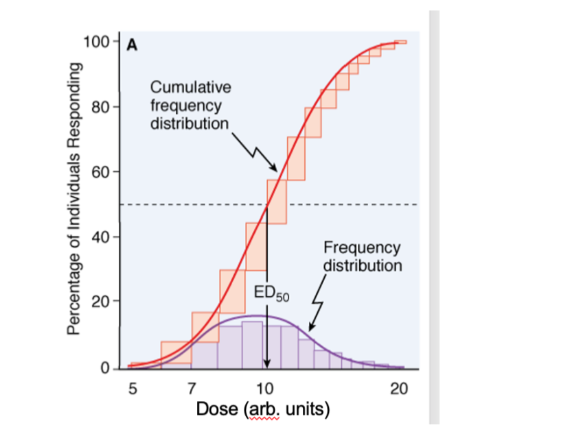 -plots the fraction of the population that responds to a given dose of drug against the drug dose