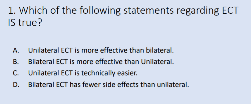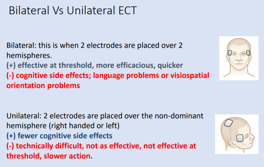 What are the advantages and disadvantages of unilateral vs bilateral ECT?
