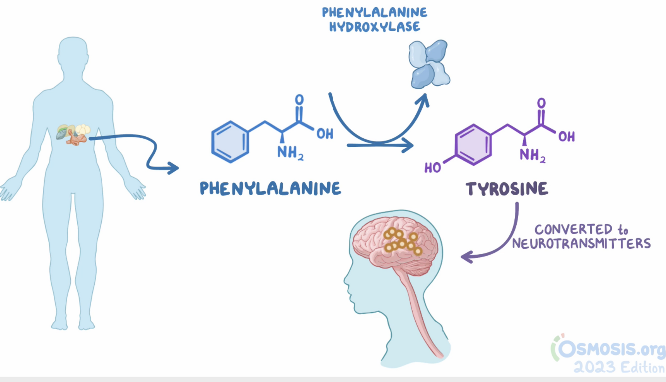 - enzyme phenylalanine hydroxylase converts it