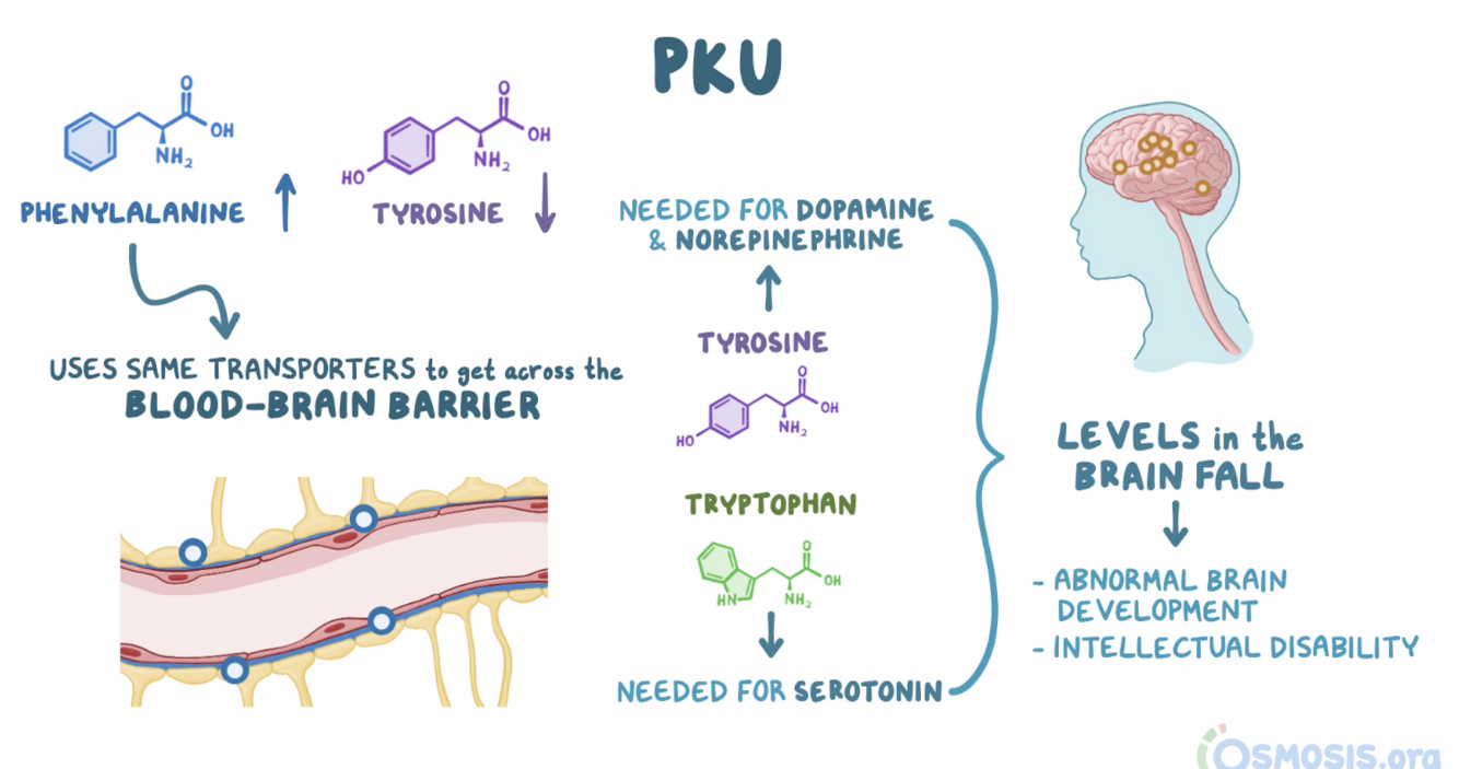 - if phenylalanine is higher than tyrosine, further testing is performed to confirm amino acid levels