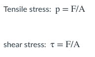 What are the equations for tensile stress and shear stress?