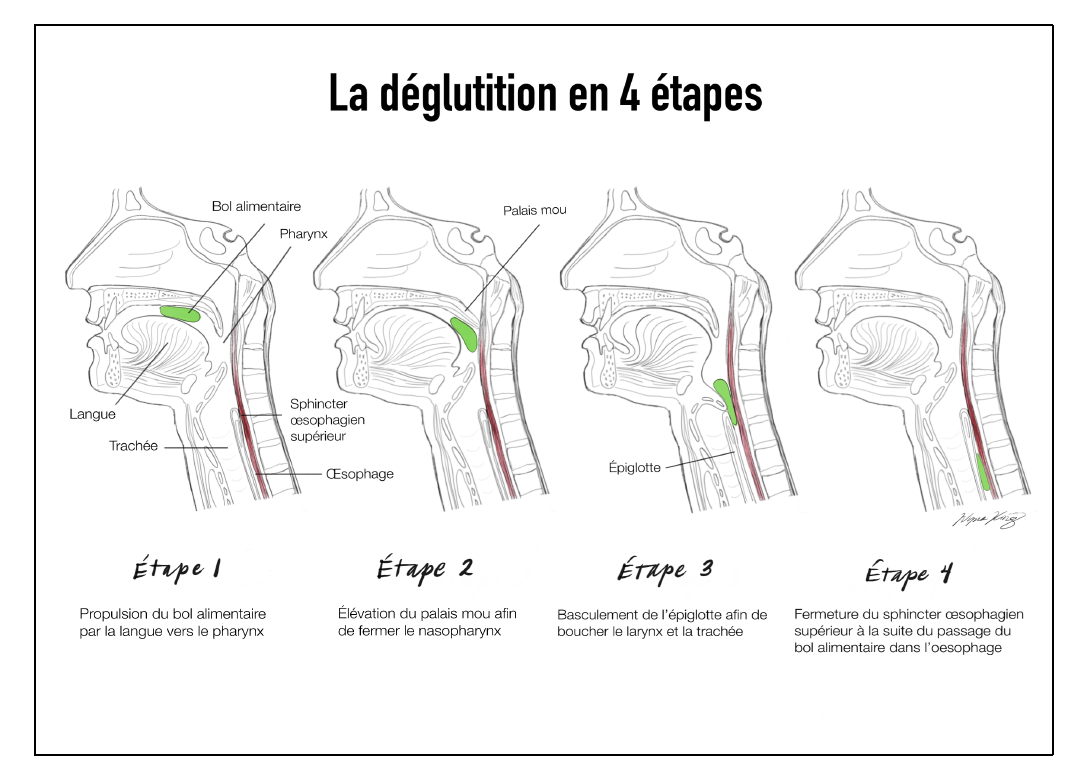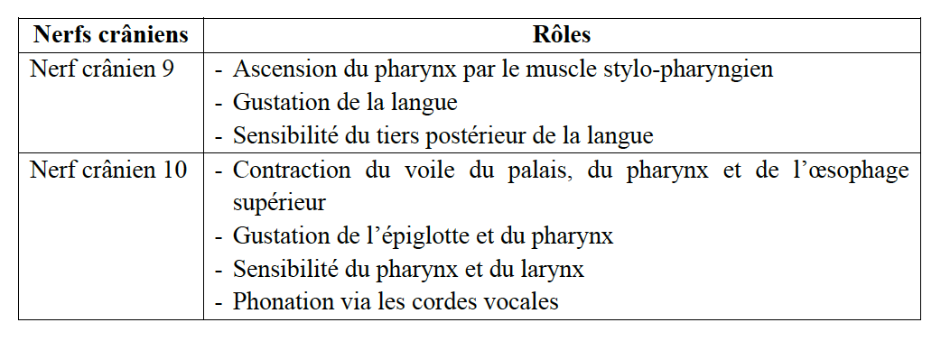 Ils orchestrent un mouvement réflexe et involontaire du palais, du pharynx, du larynx et de l’oesophage supérieur