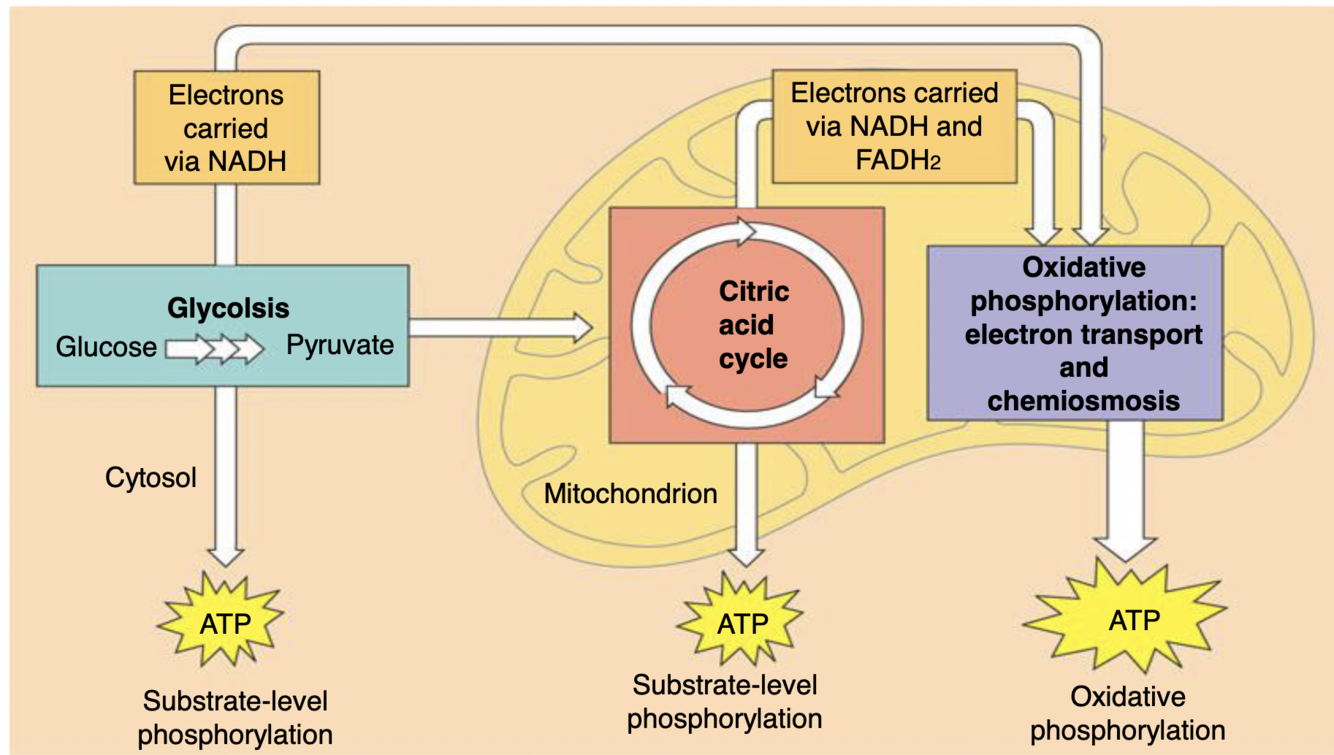 citric acid- blow apart molecule, only hydrogen and disposing of carbons and oxygens - NADH and FADH2 carry electrons to ETS
