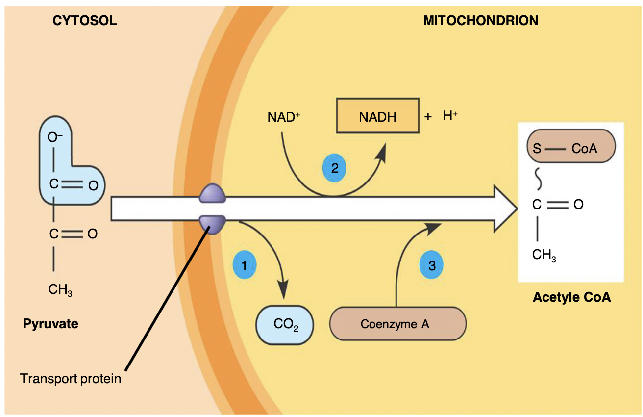 pyruvate loses an H and CO2 and is now Acetyle CoA