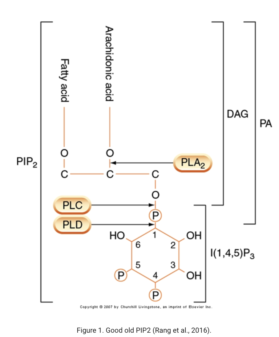 PIP2 PLA2 induced Signal cascade and enzymes involved