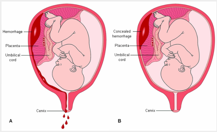 Abruption may be partial, affecting only part of the placenta, or total, involving the entire placenta.