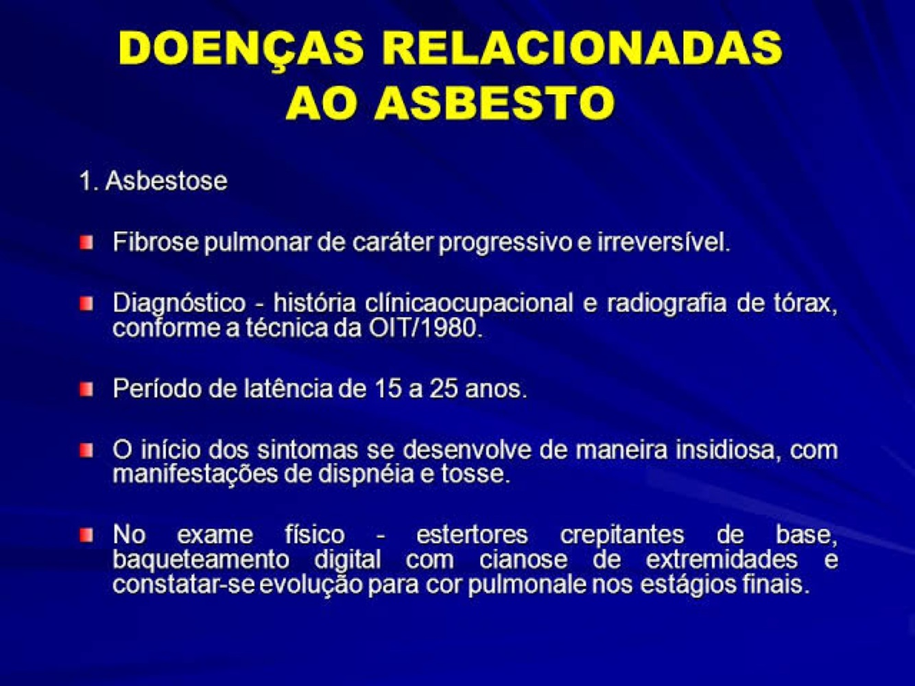 A asbestose apresenta um período de latência prolongado, frequentemente superior a 10 anos entre a exposição inicial ao asbesto e o início dos sintomas. Esse período pode chegar a várias décadas em alguns casos.