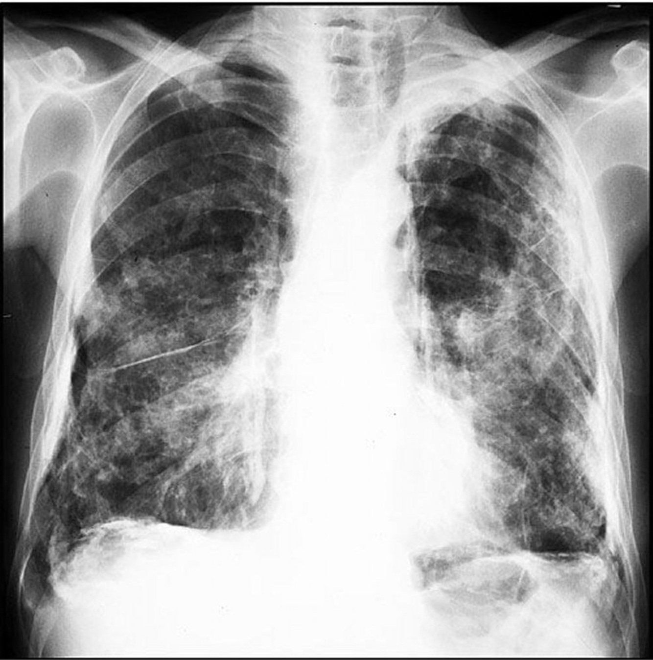 As radiografias de tórax na asbestose podem apresentar opacidades reticulares e irregulares similares às encontradas na fibrose pulmonar idiopática, tornando os dois quadros radiologicamente indistinguíveis em alguns casos.