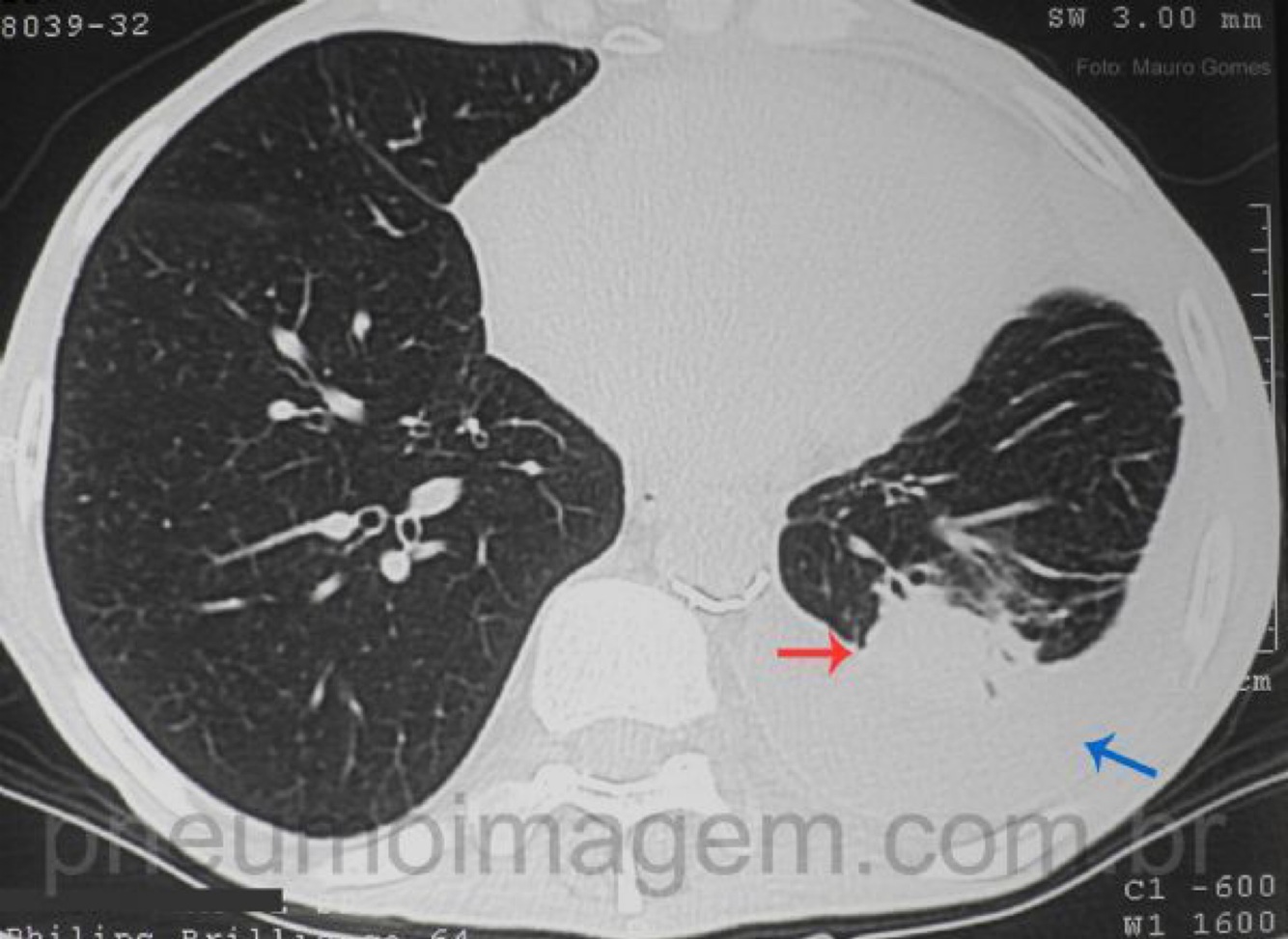 • Atelectasia redonda com distorção vascular em cauda de cometa