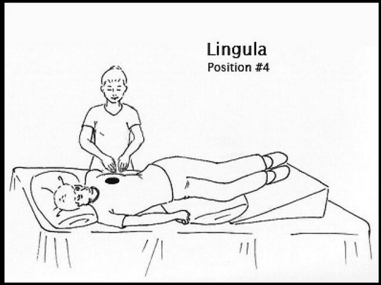 pt turned 1/4 from supine on left side w/ foot of bed elevated 12”