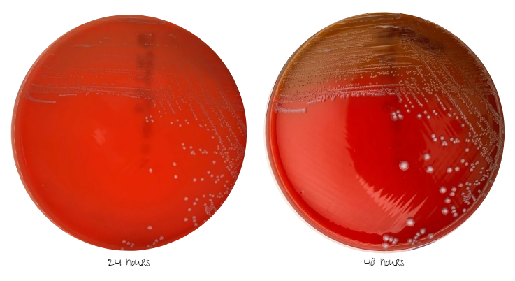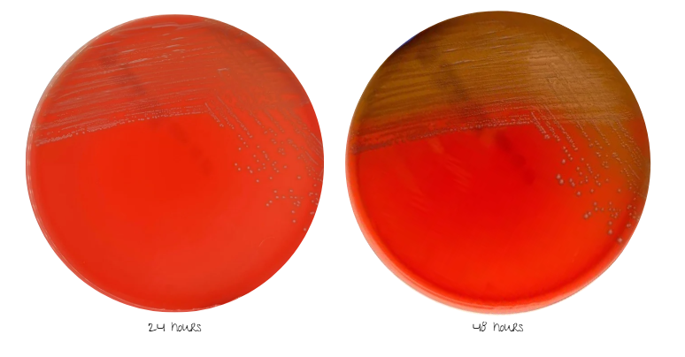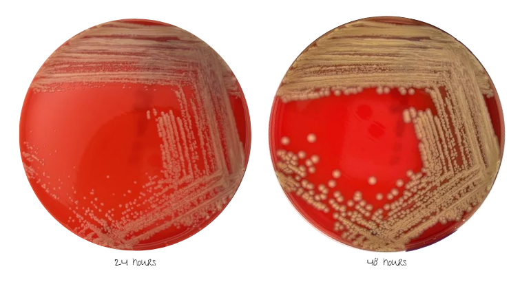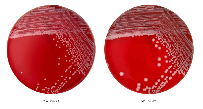 Alpha, dimpled (on left) Alpha, mucoid (on right)