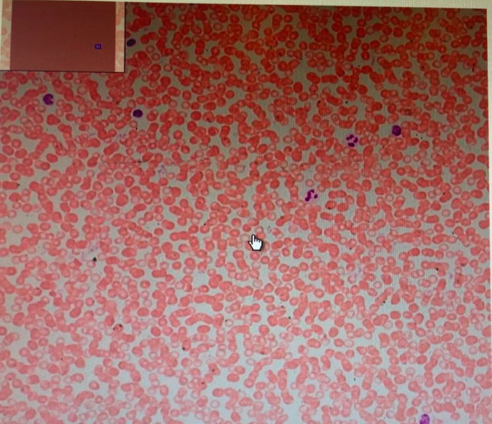 między erytrocytami widać płytki krwi - trombocyty, nie widać w nich żadnych struktur