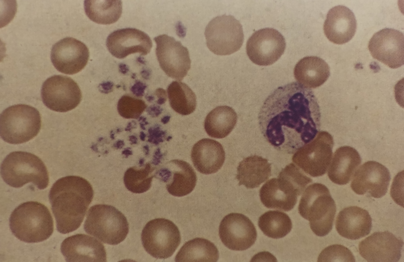 Płytki krwi (małe komórki obecne pomiędzy innymi),