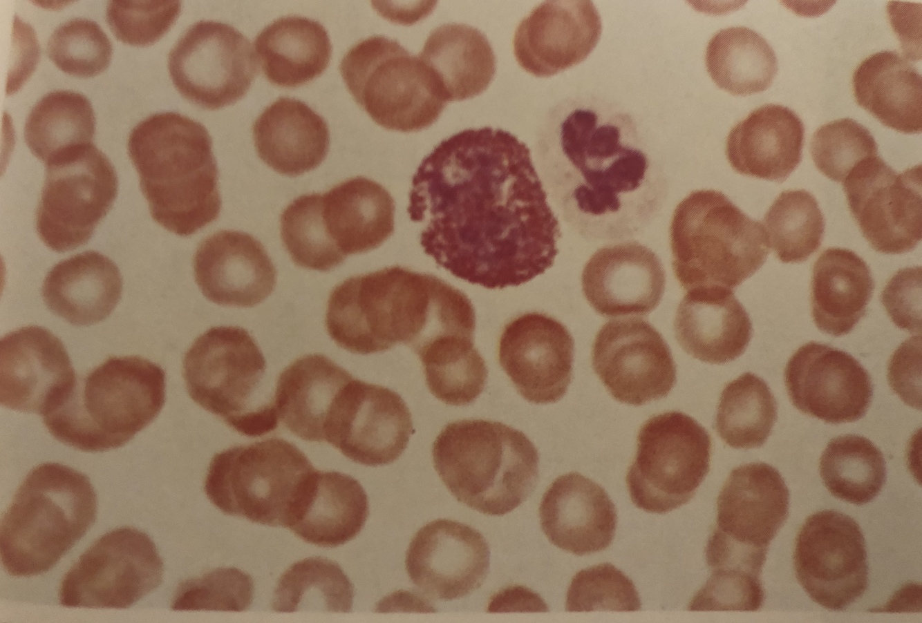 duża kom. pełna drobnych ziarnistości to granulocyt zasadochłonny