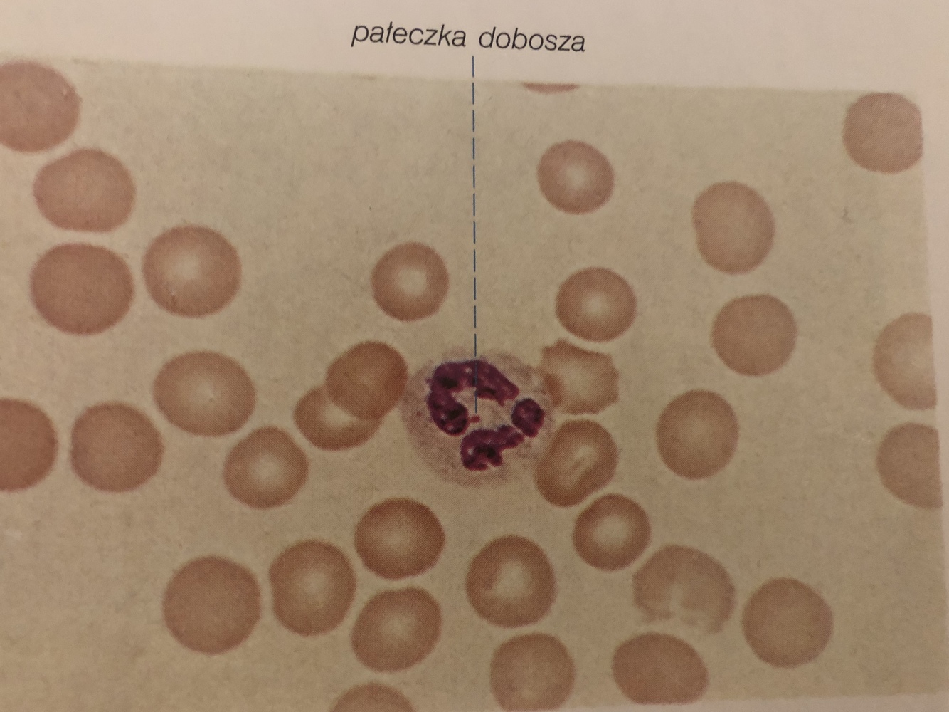 Neutrofile (wyraźnie segmentowate jądro, najczęściej trójdzielne),