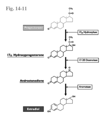 This conversion accounts for a dramatic drop in progesterone with simultaneous elevation of estradiol.