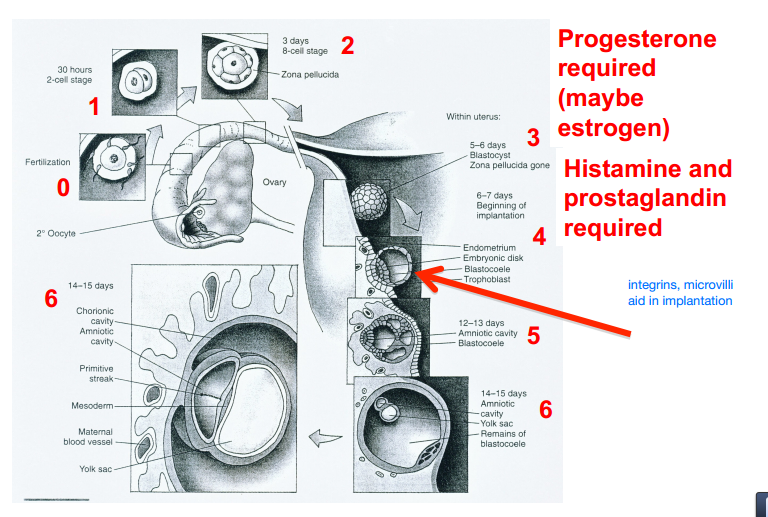 C. The process of implantation requires that the uterus be primed by progesterone; estrogen may also be required