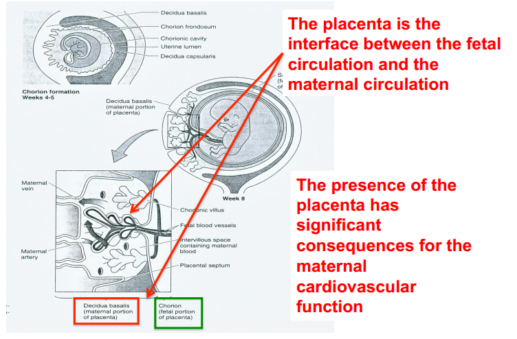 Maternal cardiac output is increased because of the extra perfusion “load” represented by the growing fetus