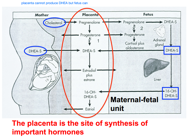 T or F: The maternal-fetal unit (mother + placenta + fetus) is an endocrine organ whose hormones play an essential role in the pregnancy and the development of the fetus.