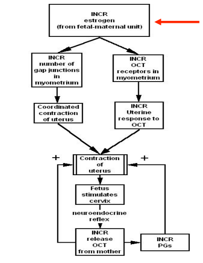 i. Promotes an increased number of gap junctions between myometrial cells, making it possible for the uterus to generate coordinated contractions