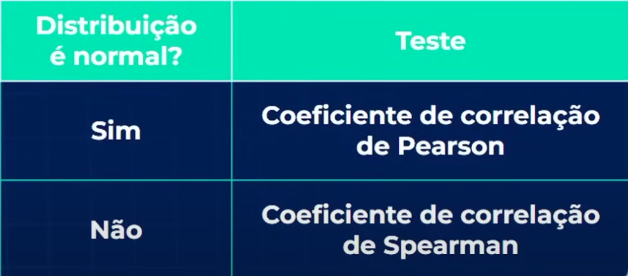 Escolha do teste estatístico para a análise entre variáveis quantitativas/numéricas