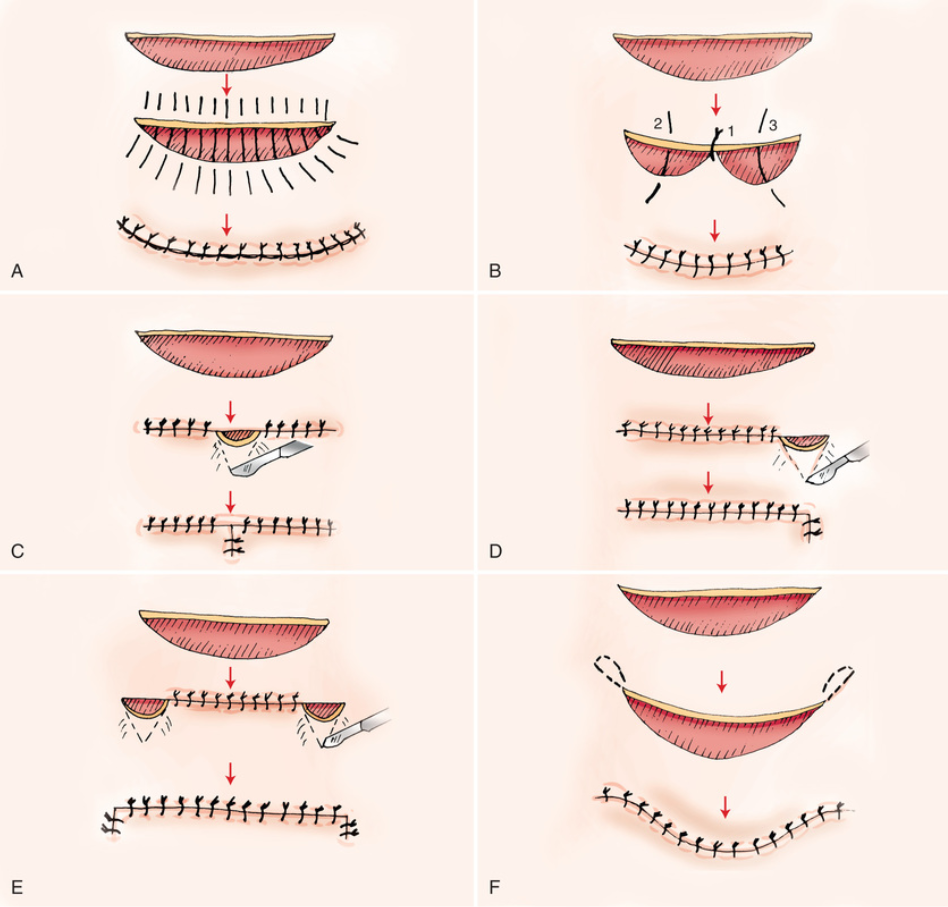 List some methods of prevention/correction of dog ear formation in ellipital incisions