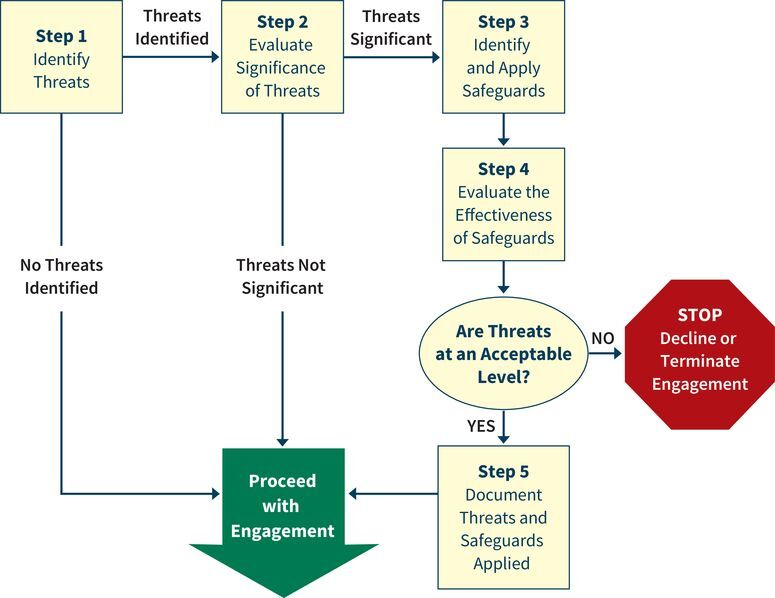 If the CPA evaluates identified threats both individually and in aggregate, the CPA should determine if the threat is at an acceptable level for a reasonable and informed third party who is aware of the circumstances would conclude if a CPA is in compliance with the rules of the Code. (This is the third party rule.)