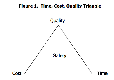 Shown on the time, cost, quality triangle with safety in the centre